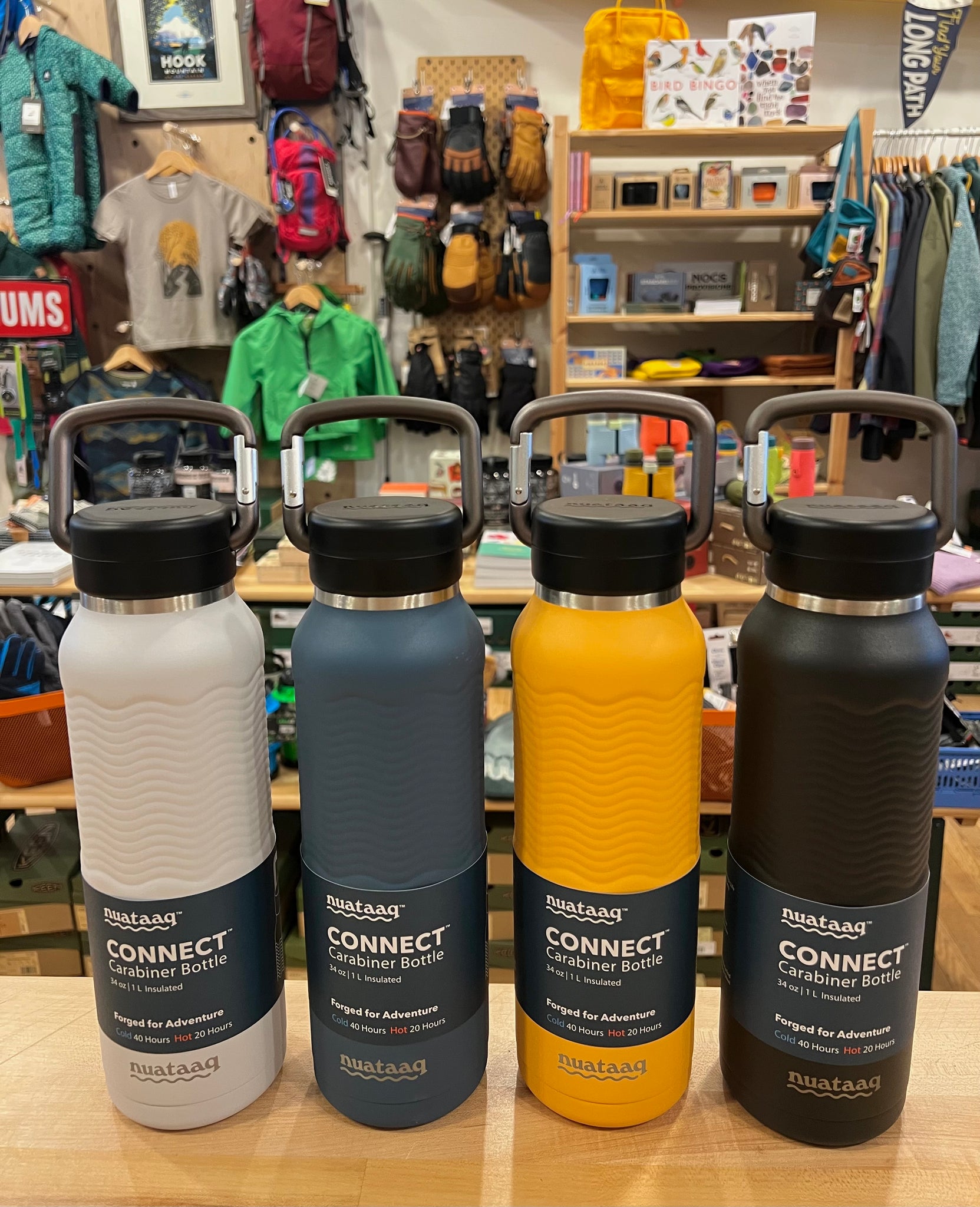 34oz/1L Carabiner Water Bottle with Clip Cap.
